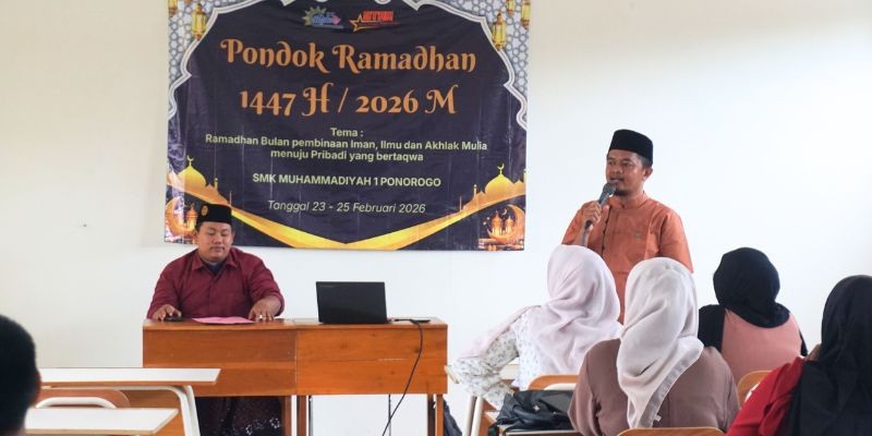 Ponorogo — SMK Muhammadiyah 1 Ponorogo (SMK Mutu Go) kembali menggelar kegiatan Pondok Ramadhan sebagai bagian dari program pembinaan karakter siswa selama bulan suci. Kegiatan ini dilaksanakan pada tanggal 23 hingga 25 Februari 2026 dengan mengusung tema “Ramadhan Bulan Pembinaan Iman, Ilmu dan Akhlak Mulia Menuju Pribadi yang Bertaqwa.”